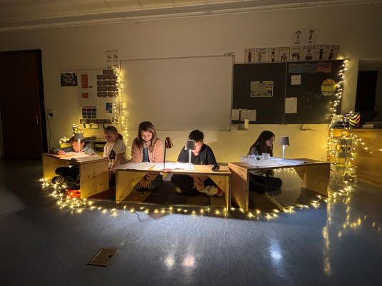 Unter dem Thema Zukunft fand in einer gemütlichen Atmosphäre unsere diesjährige Lesenacht statt. Die Schülerinnen und Schüler bereiteten im Vorfeld Hörspiele und Klanggeschichten vor, die sie mit Musik oder Geräuschen lebendig gestalteten. In stimmungsvoll beleuchteten Zimmern präsentierten sie ihre Geschichten mit viel Freude und Kreativität.